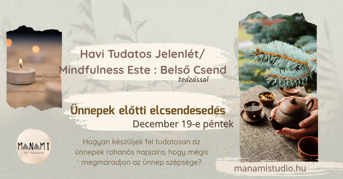 Ebben a hónapban Karácsony előtt pár nappal találkozunk, hogy közösen elcsendesedjünk, megérkezzük, hogy a karácsonyi rohanós időszakra, olykor zajos, néha még érzelmileg is nehéz napokra tudatosan készüljünk!